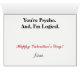 A humourous romantic card for Valentine's Day, an Anniversary, or just to say "I Love You" anytime for the gay couple who connect more on an intellectual level than physical. And, it's also for the couple with a sense of humour about their relationship. You are free to customise the occasion and change it or remove it on the inside text. Designed by Sheila Cicchi, Brownielocks.com, All Rights Reserved.