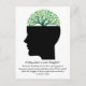 Customisable clinical psychology marketing postcards with a modern design featuring the human mind with a beautiful green tree of leaves to represent psychological growth in the brain. Custom made counseling office postcard for a therapist, psychologist, neurologist, psychiatrist, or counsellor that helps with mindset and thinking. A life coach could also personalise these postcards.