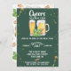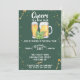 Painted beer glass, mug, hops, and wheat on hunter green background, New Year's Party Invitation.