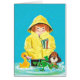 Artist: Jack Weaver | Girl with raincoat stands in puddles with frog, dog, and duck