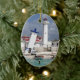 Oval ceramic ornament with an image of a lighthouse and leaning tower in Puerto Morelos, Quintana Roo, Mexico. Red back. See the entire Mexico Ornament collection in the HOME section.