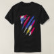I give wanted to give this a 4 instead of a 5 because these Basic DARK T0shirts run unexpectedly SLIM or Narrow. Which is great if you do not have a potbelly, but I have a paunch. It isn't the shirt's fault that I've got a beer belly. The design and shirt itself is a quality cotton shirt. The color is more of a deep purple, but still a very pretty color. The Basic DARK T-shirts run a bit SLIMMER than the Basic Ts. The neck is a fraction narrower (or seems to be narrower) also. I'm a paunchy middle-aged woman and my neck is 12 inches (31cm) thick and the neckline fell about the same as in the photo of the man, and I had the desire to tug it a bit. So if you're a thick necked man or like loose shirts, be aware these are slimmer shirts. Once I get rid of my lockdown paunch it'll look great. The shirt washed well in cold water with no apparent bleeding. We don't have a dryer, so it hung dry. Did not shrink. Love the colors and the design. The design looks smaller on my shirt than it does on the model on-line. But still, it looks good on the shirt. The printing looks as it does on the model, just the size seems fractionally smaller. Washed garment in cold water, hung dry and design appeared unaffected.
