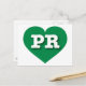 This postcard features an eco-friendly green heart containing the bold, white, upper case letters PR, the official abbreviation for Puerto Rico, the isle of enchantment.