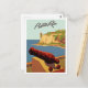 Puerto Rico postcard, view from the fortress, cannon turn on the sea. Vintage postcard.