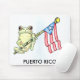 A mouse pad with a Puerto Rican flag with a frog on it.