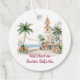 A festive tropical favor tag for Christmas events and destination celebrations in Puerto Vallarta. This design features a soft watercolor illustration of the iconic church tower, palm trees, seaside walkway, and holiday florals, paired with the phrase “Navidad en Puerto Vallarta.” Perfect for Christmas weddings, holiday parties, welcome bags, gift wrapping, and seasonal favors in sunny Mexico.