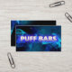Disposable Vape Puff Bar Black Business Card with a a blue smoke design, and high shine text with a blue glow behind.