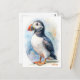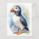 Puffin bird watercolor painting postcard