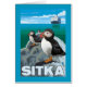 Puffins & Cruise Ship - Sitka, Alaska - Vintage Travel Poster was created in 2007. This image depicts scenes from Sitka, AK.