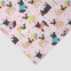 Cute birthday party Pug dogs with black and tan coats dressed in cute birthday outfits with balloons, cake and confetti pattern.