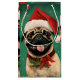 Colourful and joyful Christmas design with a Pug wearing a Santa hat.