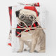 This cute pug dog is ready for the holiday season a winter scarf and Santa hat. This Christmas dog is paired with a plaid print in red and black on this set of gift wrap for the dog lover.