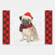 Pug Christmas Dog on Red and Black Plaid Wrapping Paper Sheet