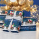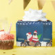 A Santa claus riding bike delivering Christmas tree and Pug dog as gift is a perfect Christmas gift idea for someone who love this dog breed.