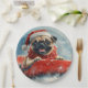 Pug Dog in Sledge Let it Snow Christmas Paper Plate