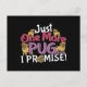 Just One More Pug, I Promise! Cute pug luv quote - cool word art design with funny cartoon illustrations of four brown dogs, one face as the letter O. > Cute for for a pug owner who owns two or more pug dogs, veterinarian, or anyone who loves pug stuff. > Personalise it! Add custom name, photo, or text.