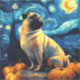Pug dog of van gogh starry night halloween Funny Jack O Lantern Face subtle graphic t shirt 2