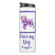 Pug pet dog silhouette purple, pink, yellow and blue digital abstract pattern. This thermal tumbler is sure to put a smile on any dog lovers face. Plus, it's eco-friendly, so she can keep it for years to come. Change ‘I love my dog’/ ‘Name’ with any text you like on both sides of the bottle.