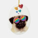Pug Dog with Hearts Valentine's Day Ceramic Tree Decoration