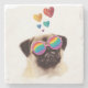Pug Dog with Hearts Valentine's Day Stone Coaster