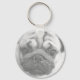 A cute pug face with carved effect applied to design. Custom key chains. Lines of different width creating the image. Gift idea.