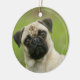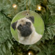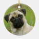 Pug Head Cocked Looking at Camera Ceramic Tree Decoration