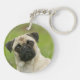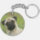 Pug Head Cocked Looking at Camera Key Ring