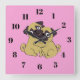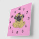 Pug hug square wall clock