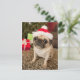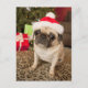 Pug in Santa Claus Hat sitting on carpet Holiday Postcard