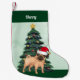 Pug in Santa Hat Christmas Tree Green Monogram Small Christmas Stocking
