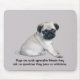 Pugs are recognised for their even-tempers, playful personalities, and their outgoing, loving dispositions. The Pug’s reason for living is to be near their people and to please them, and their sturdiness makes them a family favourite. Pugs are the companion dog par excellence; they have a great sense of humour and adore children. Pugs make peculiar sounds much like human babies; snoring, snorting and grunting. Pugs are curious by nature and will follow you around the house to see what you are doing. They are comfortable in small apartments because they need minimal exercise, but the breed can adapt easily to all situations. The Pug sheds, but its short coat requires little grooming. This square and cobby breed comes in fawn, silver fawn, apricot fawn or black, with a well-defined "mask" on his muzzle. A popular companion dog, the pug also excels in the show ring. This is a perfect gift for you or any Pug lover that you know.