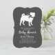 Throw a pug party! Include the big brother or sister fur baby in the celebration with this adorable pug dog baby shower design! Perfect for a puppy lover with a baby on the way. The pug is next to an adorable vintage carriage. The chalkboard grey background makes it perfect for a gender neutral or co-ed shower!