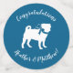 Include the big brother or sister fur baby in the celebration with this adorable pug dog baby shower design! Perfect for a puppy lover with a baby on the way. The pug is next to an adorable vintage carriage. The blue background makes it perfect for a baby boy!