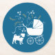 Pug Party Blue Theme Celebration Round Paper Coaster