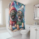“Pug Puppies’ First Snowfall - Whimsical Winter" Shower Curtain