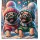 Celebrate the magic of winter with this charming artwork featuring two precious pug puppies dressed in their best winter attire. They sit snug and cosy, watching their first snowfall amidst a wintry scene with beautifully decorated trees. The falling snowflakes and festive atmosphere make this design perfect for adding a touch of whimsy and warmth to any space.