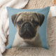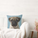 Pug Puppy Against Blue Background Cushion