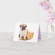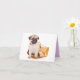 Send some Pug love! In the modern age of technology there is nothing sweeter than to receive a personalised handwritten note from friends and family. This cute blank notecard features a happy Pug puppy dog playing in a paper bag highlighted against a crisp white background.
