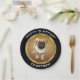 Pug Puppy on Faux Gold Happy Birthday with Name Paper Plate. Personalise you paper plate by typing your name in the text box. "Happy Birthday" can also be changed for other occasions.