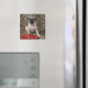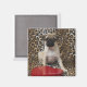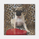 Pug puppy sitting against animal print magnet