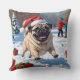 Pug Running in Snow with Christmas Hat Cushion