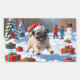 Pug Running in Snow with Christmas Hat Rectangular Sticker
