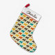 Pug lover's Christmas stocking with custom text for your name or the name of your furry friend. Colourful dog silhouettes pattern.
