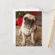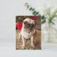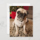 Pug sitting on carpet, Christmas tree Holiday Postcard