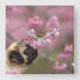 Pug Smelling Cherry Blossoms Square Wall Clock