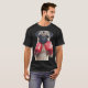 I give wanted to give this a 4 instead of a 5 because these Basic DARK T0shirts run unexpectedly SLIM or Narrow. Which is great if you do not have a potbelly, but I have a paunch. It isn't the shirt's fault that I've got a beer belly. The design and shirt itself is a quality cotton shirt. The color is more of a deep purple, but still a very pretty color. The Basic DARK T-shirts run a bit SLIMMER than the Basic Ts. The neck is a fraction narrower (or seems to be narrower) also. I'm a paunchy middle-aged woman and my neck is 12 inches (31cm) thick and the neckline fell about the same as in the photo of the man, and I had the desire to tug it a bit. So if you're a thick necked man or like loose shirts, be aware these are slimmer shirts. Once I get rid of my lockdown paunch it'll look great. The shirt washed well in cold water with no apparent bleeding. We don't have a dryer, so it hung dry. Did not shrink. Love the colors and the design. The design looks smaller on my shirt than it does on the model on-line. But still, it looks good on the shirt. The printing looks as it does on the model, just the size seems fractionally smaller. Washed garment in cold water, hung dry and design appeared unaffected.