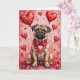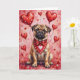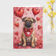 Pug Valentine’s Day Dog with Hearts Red Card