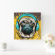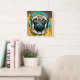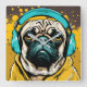 Pug wearing headphones square wall clock