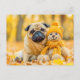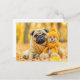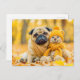 Pug with Plush Toy in Autumn Forest Postcard