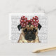 Pug with Red Spotty Bow On Head Postcard